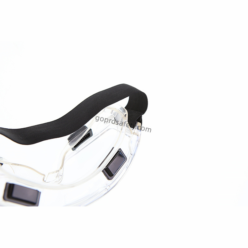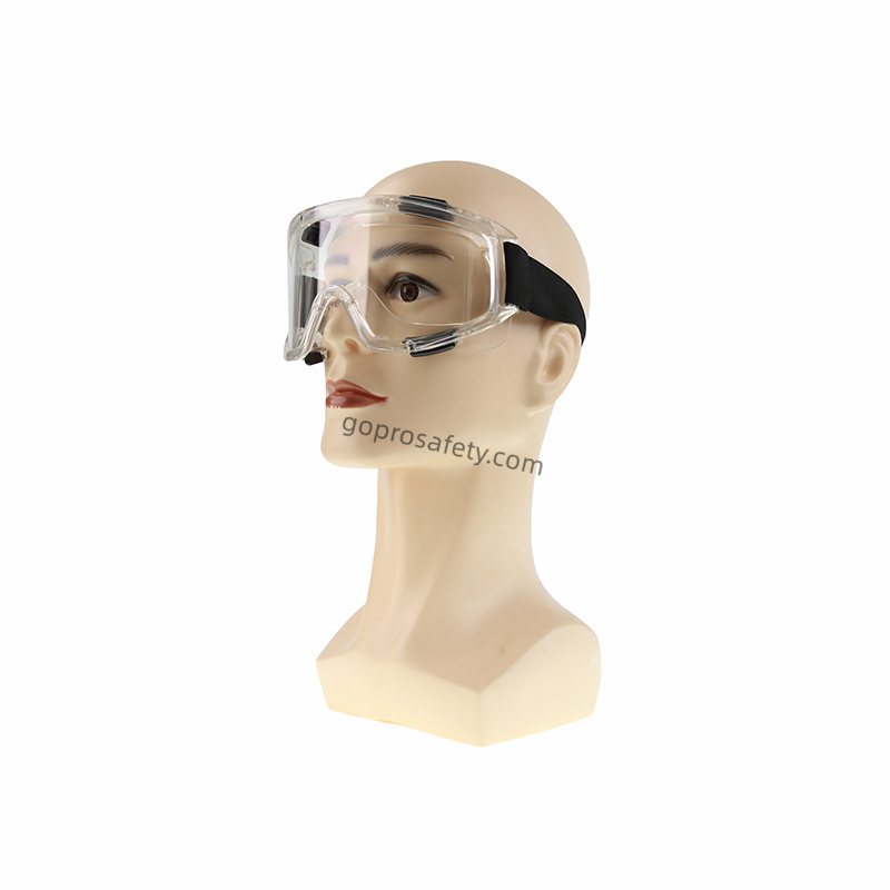 The goggles are manufactured with impact-resistant polycarbonate (PC) lenses, offering durability and optical clarity for precision tasks. An indirect ventilation system promotes airflow to reduce fogging while preventing direct liquid or particle entry, ensuring comfort during prolonged wear.